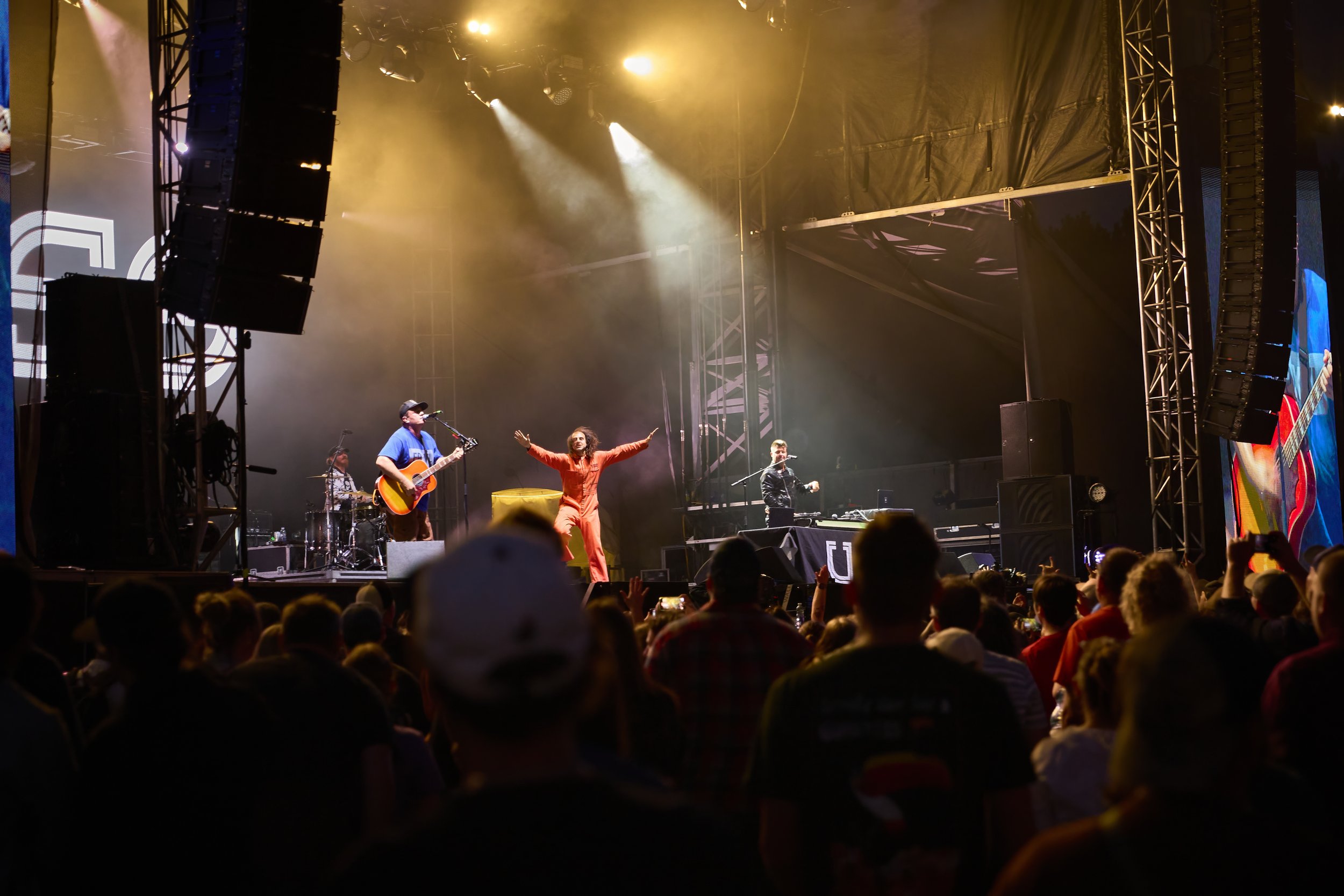 Generations of Canadian fans took to the Great Lawn at Landsdowne. The well known, well loved, and well.. freaking fantastic duo left it all on the stage. The duo that is so synced with one another, so connected to the fans, and showed us how passionate they are. As a big fan myself, who spent influential tween years hearing USS’s very first single on the radio, every time I see the boys (because I have lost count the number of times I have been to see a USS show) they always leave you feeling like that was the best USS show yet. This gig was no different. Despite a large stage, the music, beats, and energy was much larger! Human Kebab DJ’d on his head within the first 5 minutes of the show. Ash played with the guitar behind his head and off to the side. Crowds of fans sang and cheered.